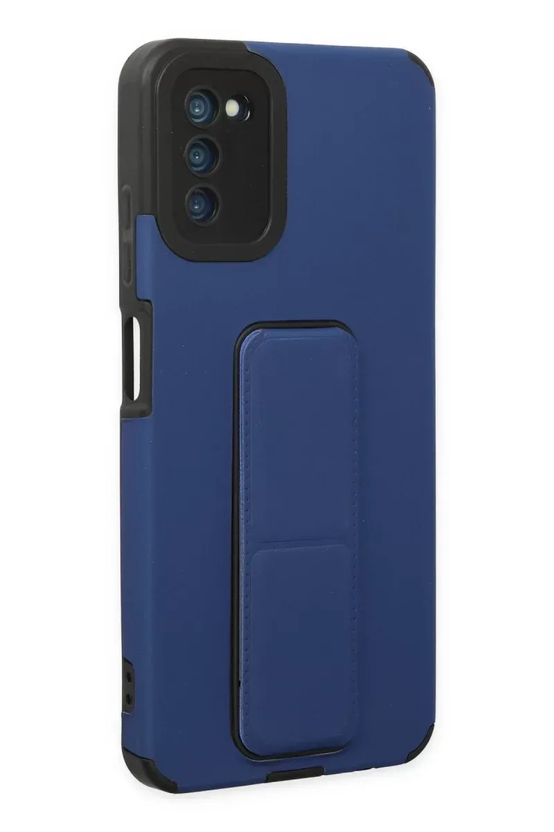 Newface Samsung Galaxy A03S Kılıf Mega Standlı Silikon - Mavi
