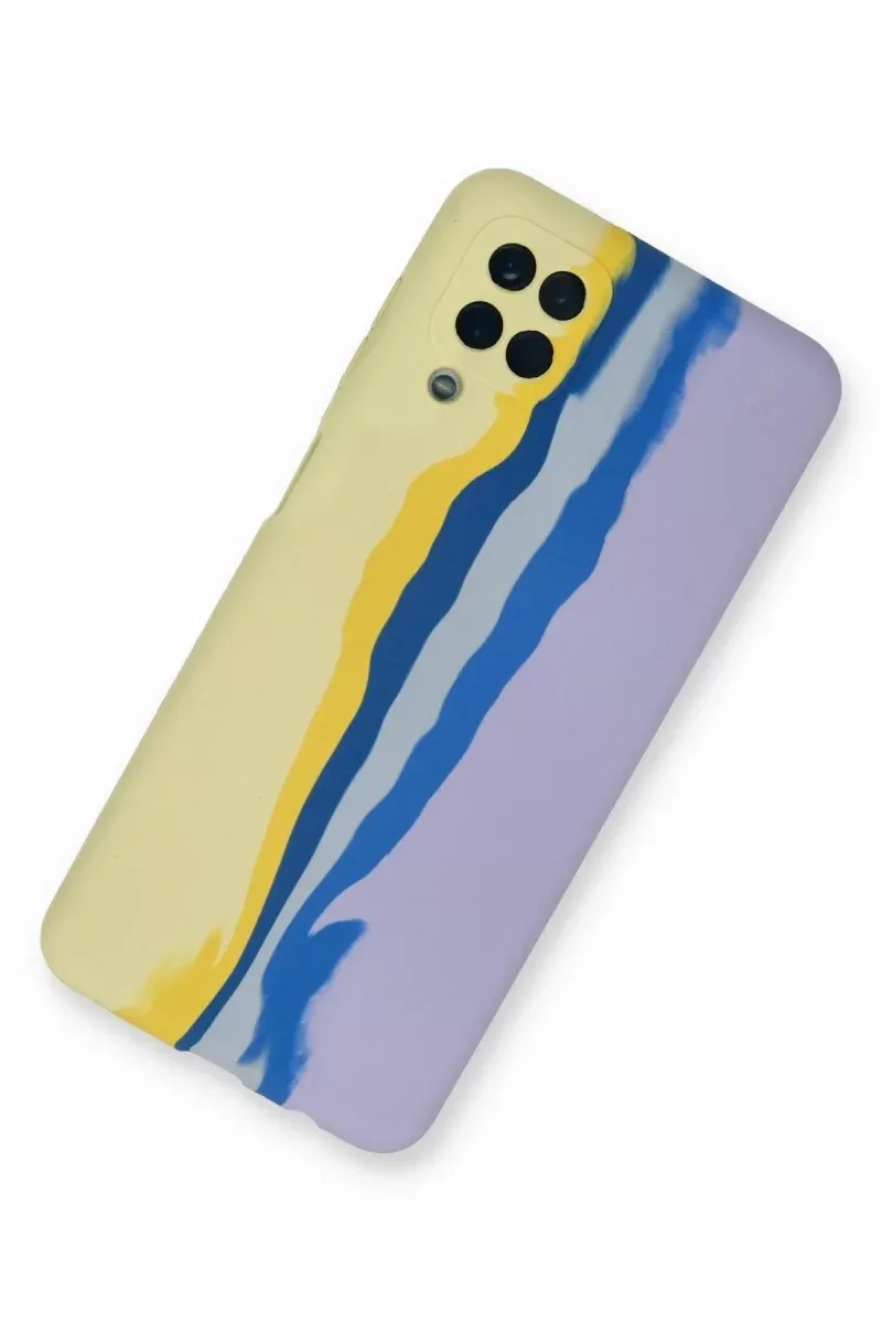 Newface Samsung Galaxy A22 Kılıf Ebruli Lansman Silikon - Sarı-Lila