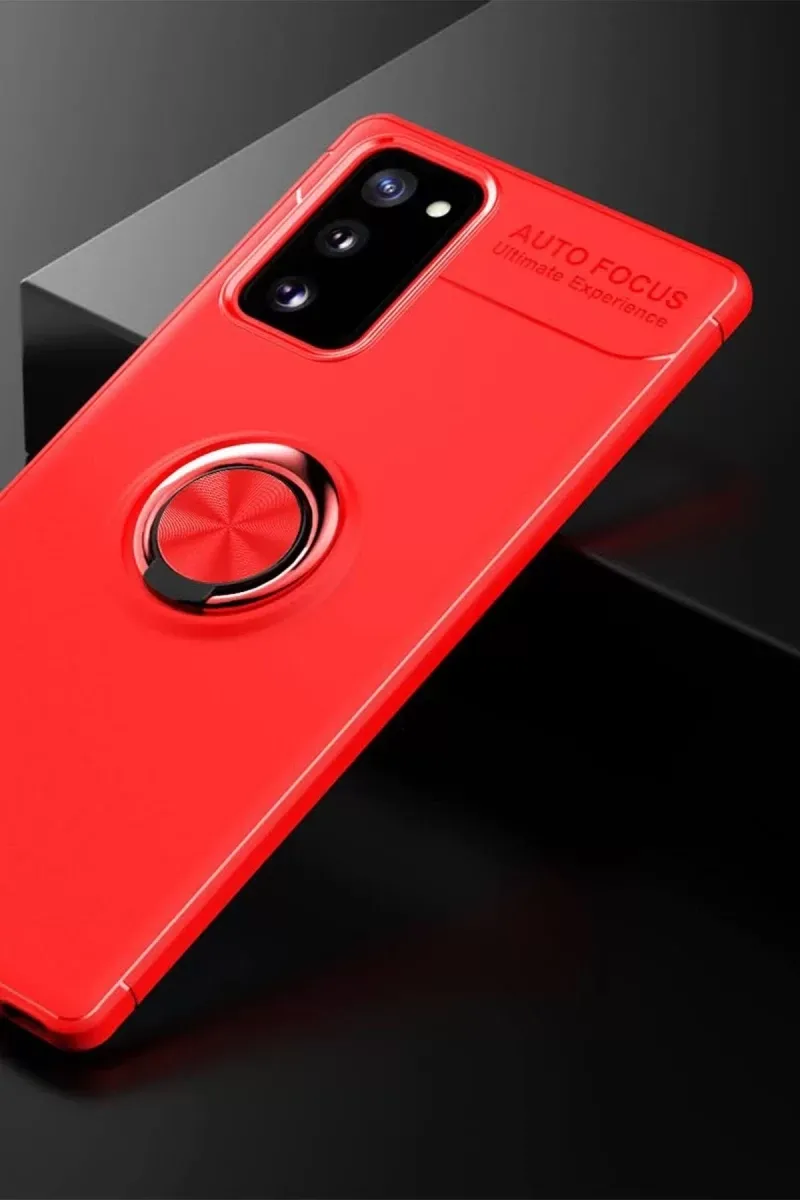 Newface Samsung Galaxy Note 20 Kılıf Range Yüzüklü Silikon - Kırmızı