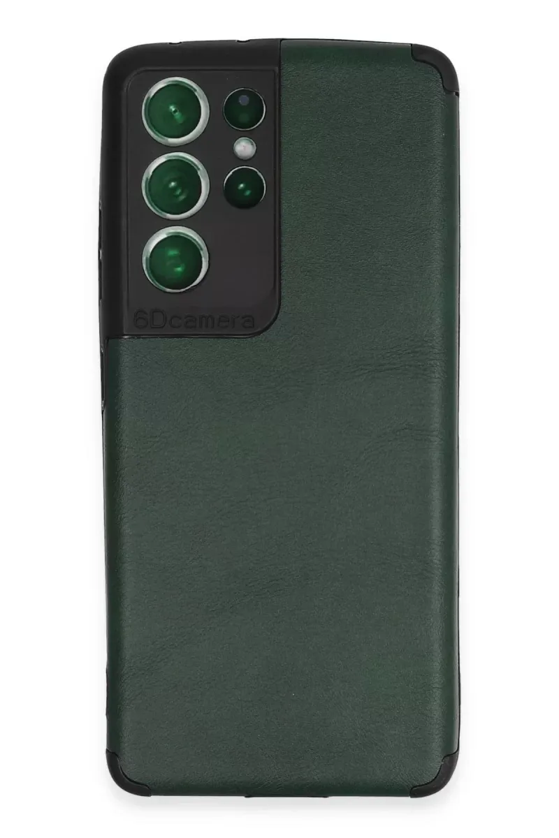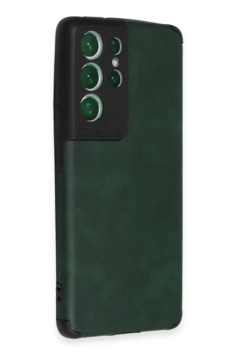 Newface Samsung Galaxy S21 Ultra Kılıf Loop Deri Silikon - Yeşil
