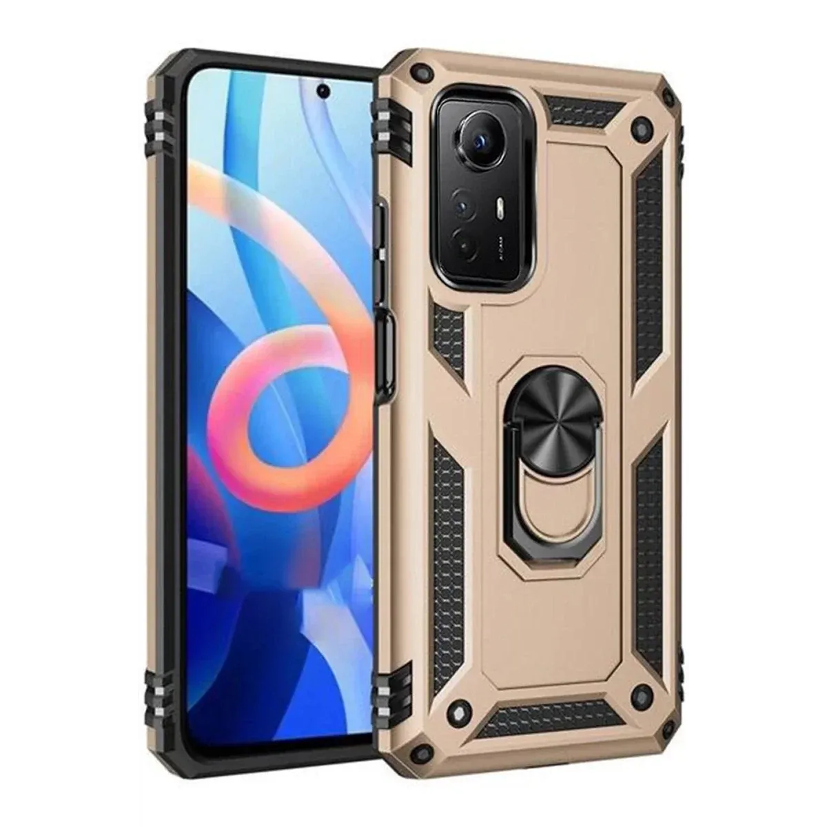 Newface Xiaomi Redmi Note 12S Kılıf Sofya Yüzüklü Silikon Kapak - Gold