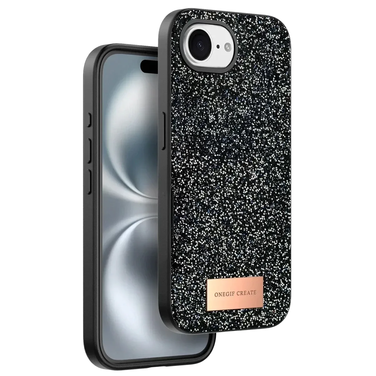 Onegif Apple iPhone 16E Bright Simli Kapak - Siyah