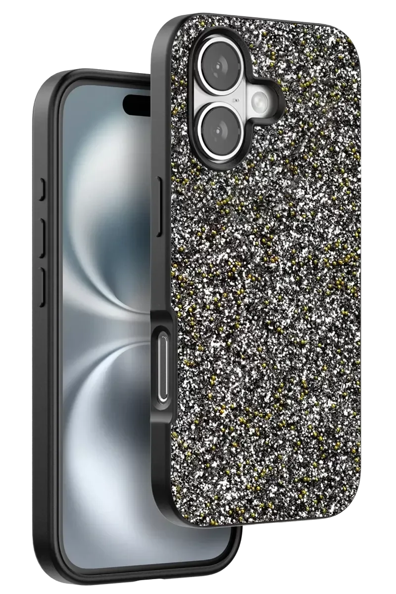 Onegif iPhone 16 Plus Bright Simli Kapak - Gümüş