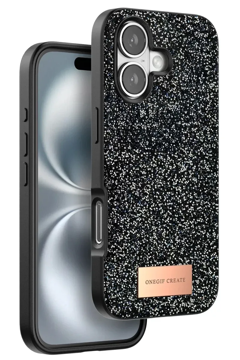 Onegif iPhone 16 Plus Bright Simli Kapak - Siyah