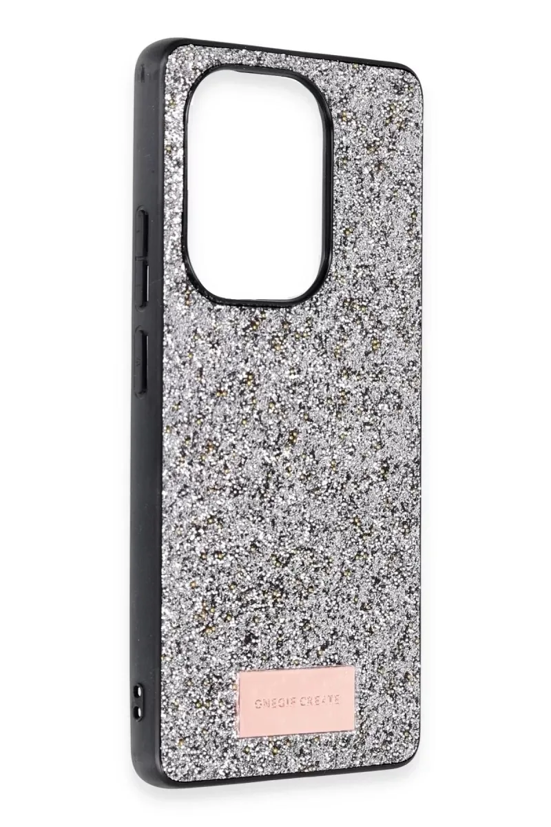 Onegif Xiaomi Redmi Note 13 Pro 4G Bright Simli Kapak - Gümüş