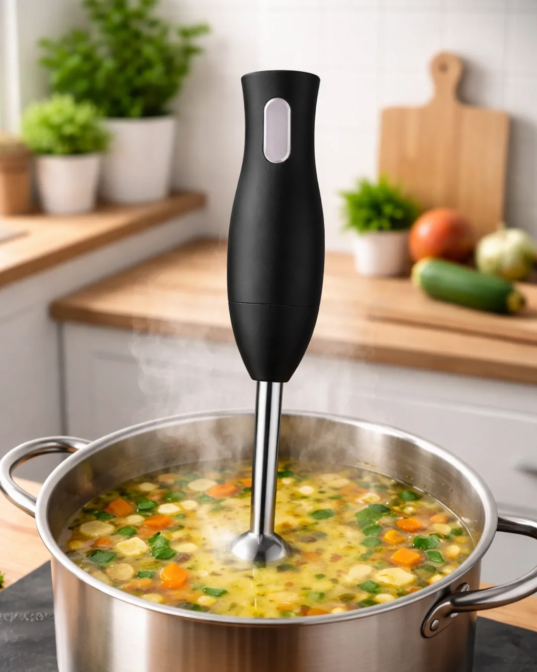 Elektrikli el blenderı, mutfakta hızlı ve pratik karıştırma işlemleri yapmak için ideal bir yardımcıdır. Paslanmaz çelik metal blender ayağı sayesinde güçlü ve dayanıklı performans sunar. Ergonomik tasarım kullanım kolaylığı sağlar. Emniyet sistemi güvenli kullanım için geliştirilmiştir. Asma halkası sayesinde blender mutfakta kolay şekilde saklanabilir.