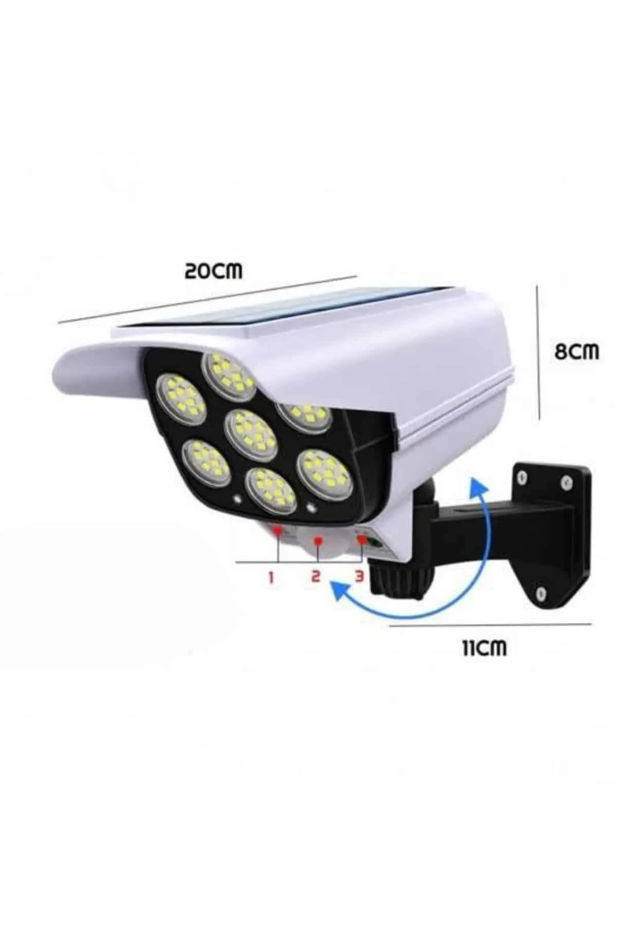 Bu güneş enerjili LED güvenlik lambası, modern tasarımı ve enerji verimliliği ile dış mekanlarınızda güvenliğinizi ve aydınlatmanızı artırmak için idealdir. Güneş paneli, gündüzleri enerji depolayarak gece harekete duyarlı sensör aracılığıyla devreye girer ve otomatik olarak güçlü ışık yayar. Hareket sensörü, 120° algılama açısıyla 5-8 metre mesafeye kadar hareketi tespit edebilir, bu da ışığın yalnızca ihtiyaç duyulduğunda açılmasını sağlar ve enerji tasarrufu sağlar. IP65 su geçirmez özelliği, bu lambayı tüm hava koşullarında kullanabileceğiniz anlamına gelir; yağmur, kar ve rüzgar gibi zorlu hava şartlarına karşı dayanıklıdır. Şık ve modern kamera tasarımı, sadece aydınlatma değil aynı zamanda çevre güvenliğinizi de sağlar. Kablolu bağlantı gerektirmeyen bu ürün, basit montajı ile her türlü dış mekan alanına kolayca kurulabilir. Kumanda ile açma, kapama ve mod değiştirme gibi işlemleri uzaktan gerçekleştirebilirsiniz. Bu dayanıklı ABS plastik ve alüminyum yapısına sahip aydınlatma, her türlü ortamda uzun süreli kullanım sağlar. Çevre dostu enerji tasarrufu sağlayan bu lamba, pratik ve güvenli bir aydınlatma çözümü arayanlar için mükemmel bir tercihtir.