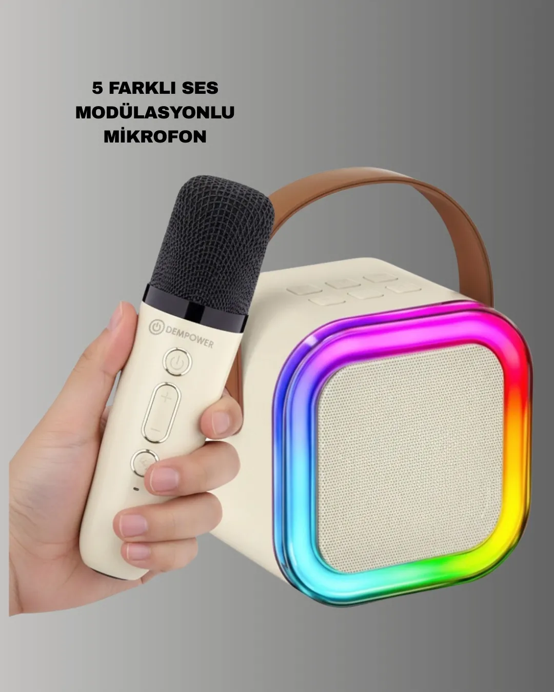 Karaoke mikrofon hoparlör seti, müzik ve eğlenceyi bir arada sunan pratik bir settir. Yüksek kaliteli hoparlör ve mikrofon yapısı sayesinde ses netliği ve performans ön plandadır. Evde ve dış mekânda kullanıma uygundur. Bluetooth kablosuz bağlantı özelliği sayesinde cihazlarınıza kolayca bağlanabilirsiniz. 10 metrelik etki mesafesi, performans sırasında özgür hareket etmenizi sağlar. Ses kontrol düğmeleri ile ses seviyesini rahatça ayarlayabilirsiniz. 10–20W çıkış gücü ve 75 dB ses oranı ile dengeli ve güçlü ses performansı sunar. Lityum pil teknolojisi sayesinde tek şarjla yaklaşık 6 saat kesintisiz kullanım imkânı sağlar. Taşınabilir ve kompakt tasarımı, ürünü her ortamda kullanıma uygun hale getirir. Şarj edilebilir pil yapısı, kullanım kolaylığı sunar. Paket içeriğinde 1 adet hoparlör, 1 adet mikrofon ve 1 adet şarj kablosu bulunmaktadır. Eğlenceyi her yere taşımak isteyenler için ideal bir karaoke setidir.