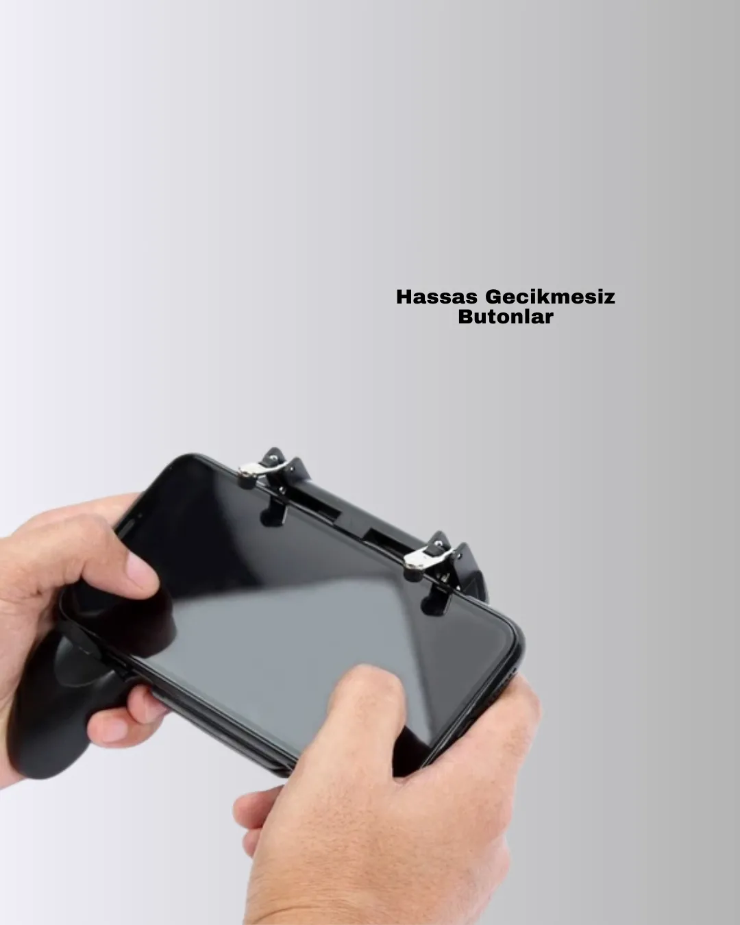 Mobil FPS oyunlar için geliştirilen joystickli ve tetikleyicili gamepad, daha hızlı tepki ve hassas kontrol sunar. PUBG Mobile gibi rekabetçi oyunlarda performansı artırır. Ergonomik ve hafif tasarımı, uzun süreli kullanımlarda konfor sağlar. ABS plastik yapısı dayanıklıdır. Silikon destekli tetikleyiciler ekranı korur ve kaymayı azaltır. 4.7–6.5 inç telefonlarla uyumlu olması sayesinde iPhone ve Android cihazlarda rahatlıkla kullanılabilir. Taşınabilirliği ile her yerde oyun keyfi sunar.