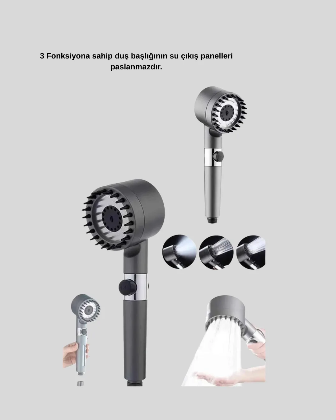 Masaj uçlu yüksek basınçlı duş başlığı, duş alırken hem cilt temizliğini hem de rahatlamayı bir arada sunar. Özel masaj başlıkları, suyun cilde eşit ve derinlemesine temas etmesini sağlayarak etkili bir temizlik sunar. Aynı zamanda kasları gevşetmeye yardımcı olan masaj hissiyle günün stresini azaltır. Yüksek basınçlı su akışı, düşük su tüketimiyle güçlü performans sağlar. Bu sayede su tasarrufu yaparken temizlik kalitesinden ödün vermezsiniz. Ergonomik tasarımı sayesinde elde rahat tutulur ve uzun süreli kullanımda bile konfor sağlar. Kolay temizlenebilir yapısı, kireçlenmeye karşı dayanıklıdır ve ilk günkü performansını uzun süre korur.